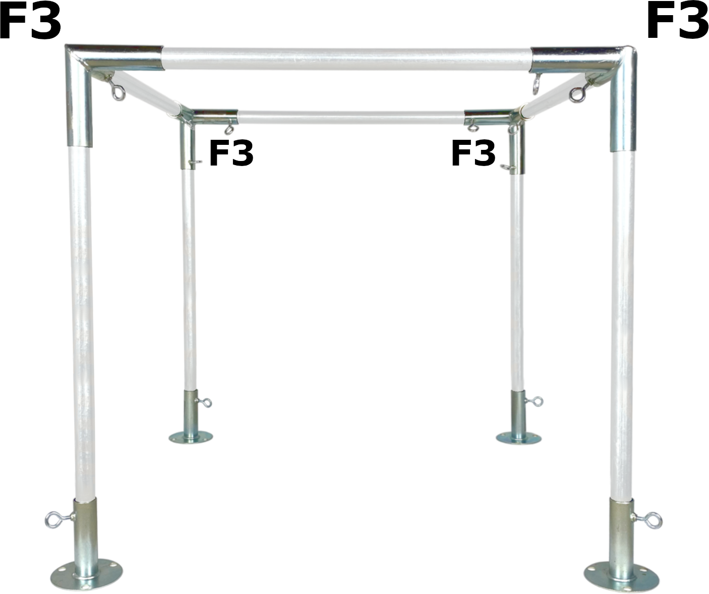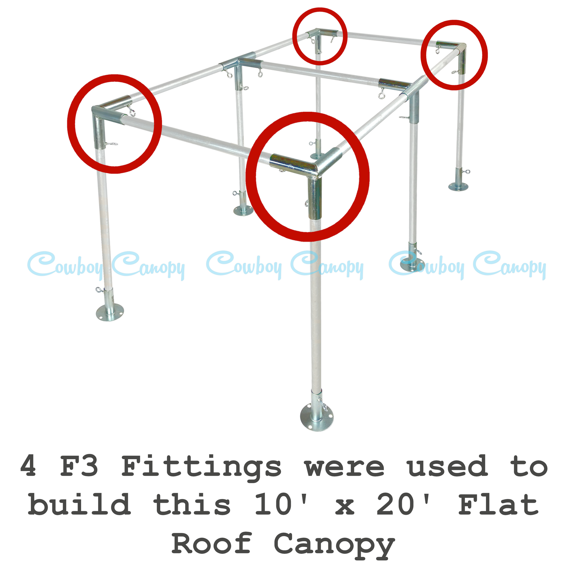 F3 Fittingsare 3-Way Fittings used to build flat roof canopies.