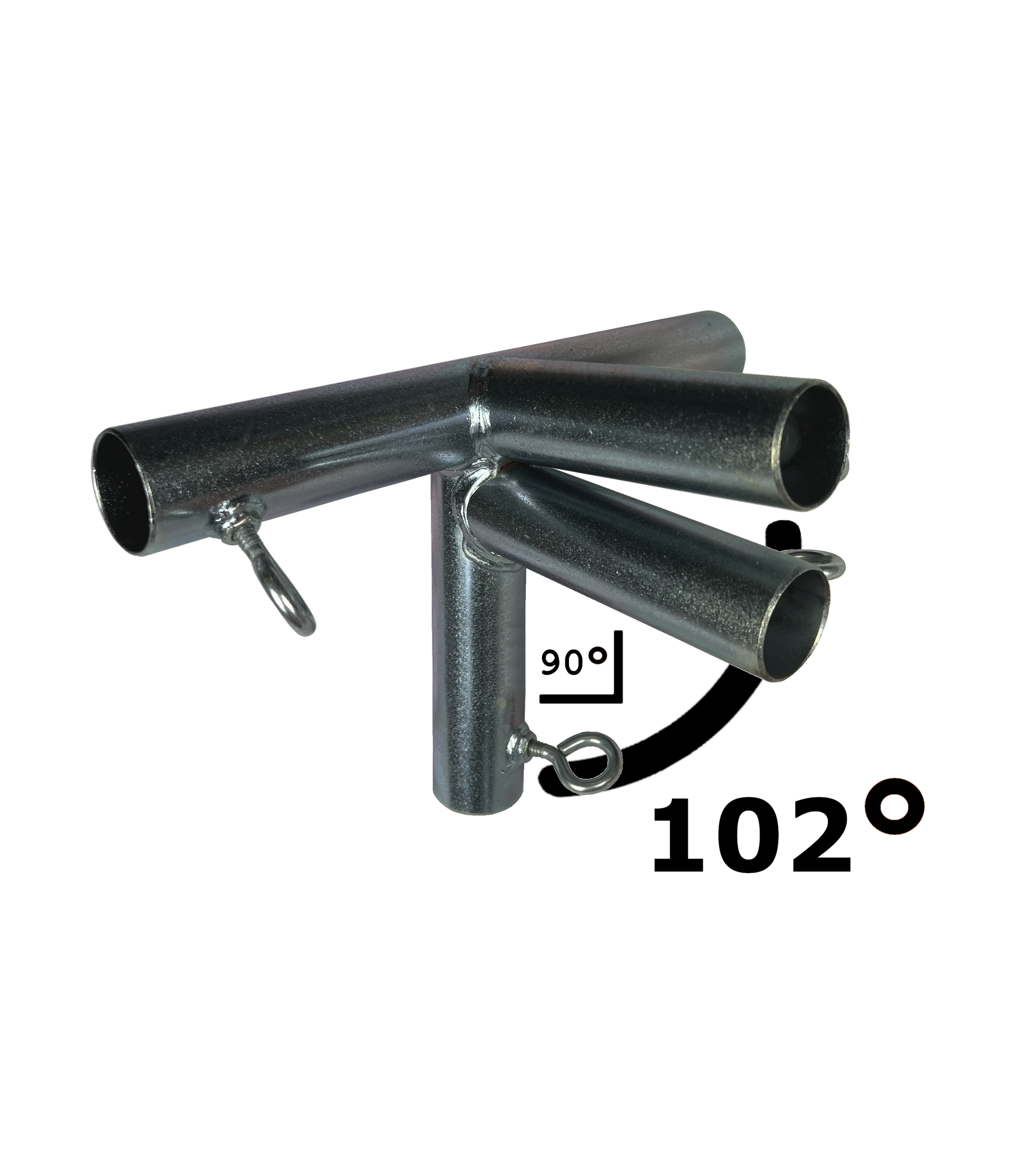 P51 Fittings are reinforced 5-Way Fittings used to build reinforced slope and reinforced low peak canopies with roof pitches of 102 degrees. A 102-degree roof pitch has 2.5 inches of rise for every foot of run.